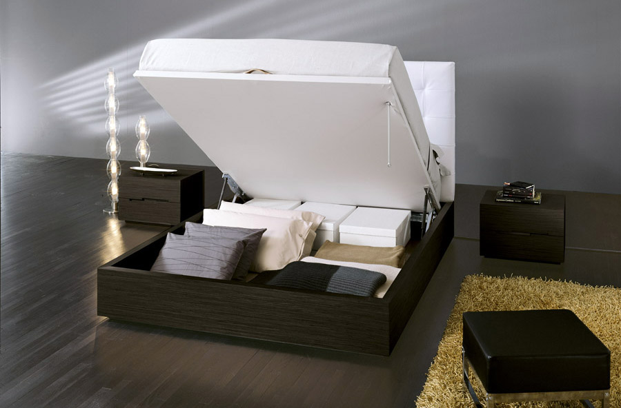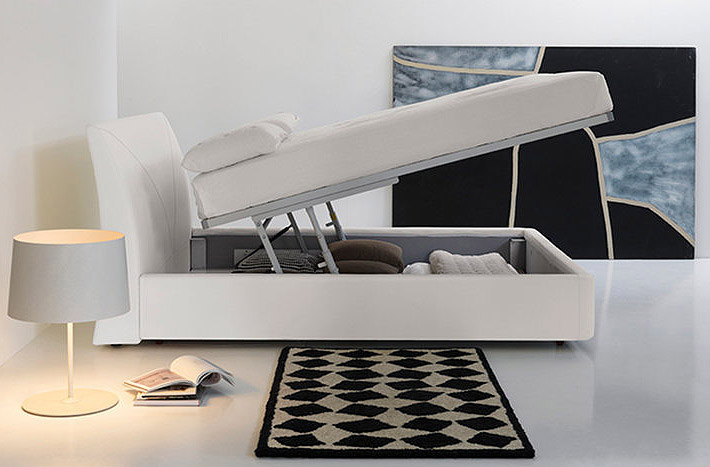 Ampio box sotto la rete è creato per contenere oltre coperte e cuscini, anche diversi oggetti per tenere sempre in ordine, Vs camera da letto.