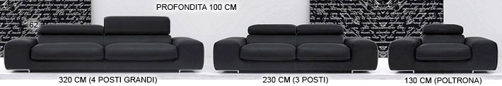 | Divano 4 posti grande, 3 sedute + 3 spalliere regolabile | 320 x 62-90 x 100 cm | €1910 |