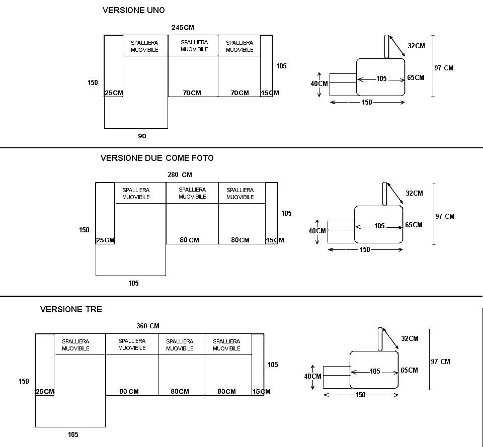 Le dimensioni sono studiati positivamente per poter inserire il divano angolare anche negli spazi più ridotti.