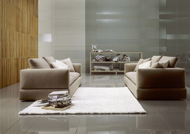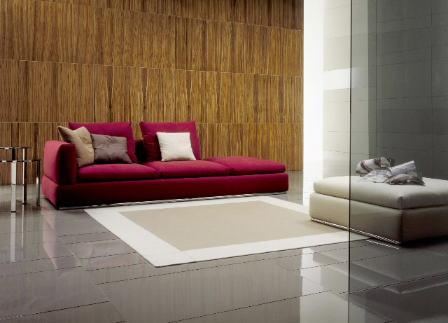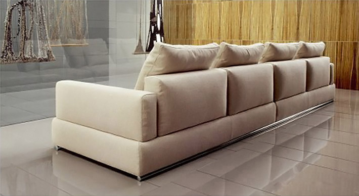 Piedi in legno di serie. E possibile avere i divani con basamento in acciaio: costo + €180 per divano.