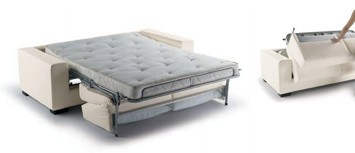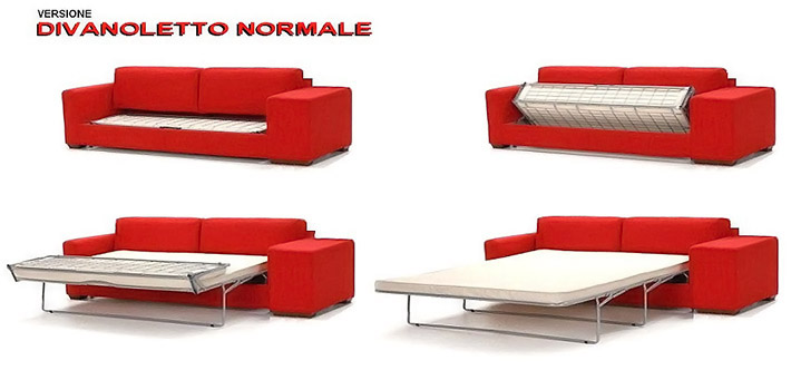 1) Divano-letto normale che si apre togliendo i cuscini della seduta, e tirando fuori la rete.
