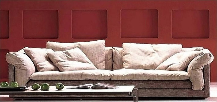 Le spalliere de cuscini sui bracci, sono in gomma piuma, anche essi morbidi.